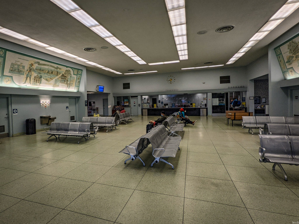 6. Помещение станции изнутри выглядит очень утилитарно, здесь нет никаких декоративных элементов, которыми любили наделять вокзалы, построенные в начале XX века. Ну, хоть чисто - и то хорошо.