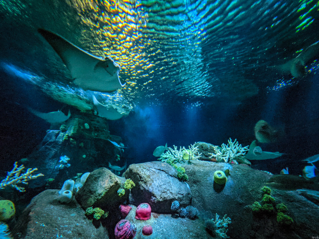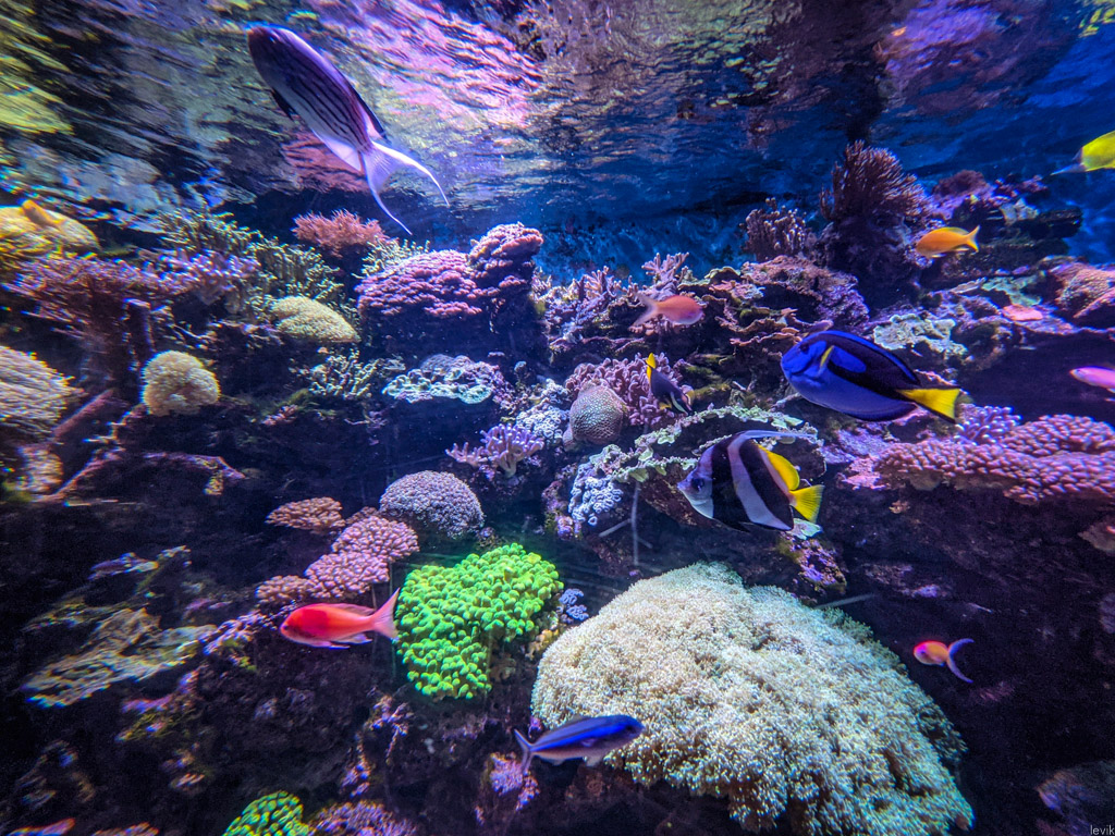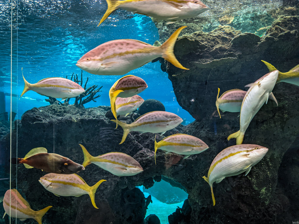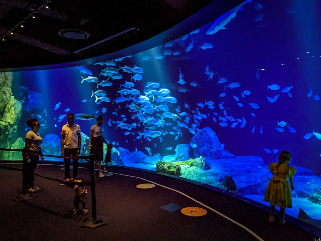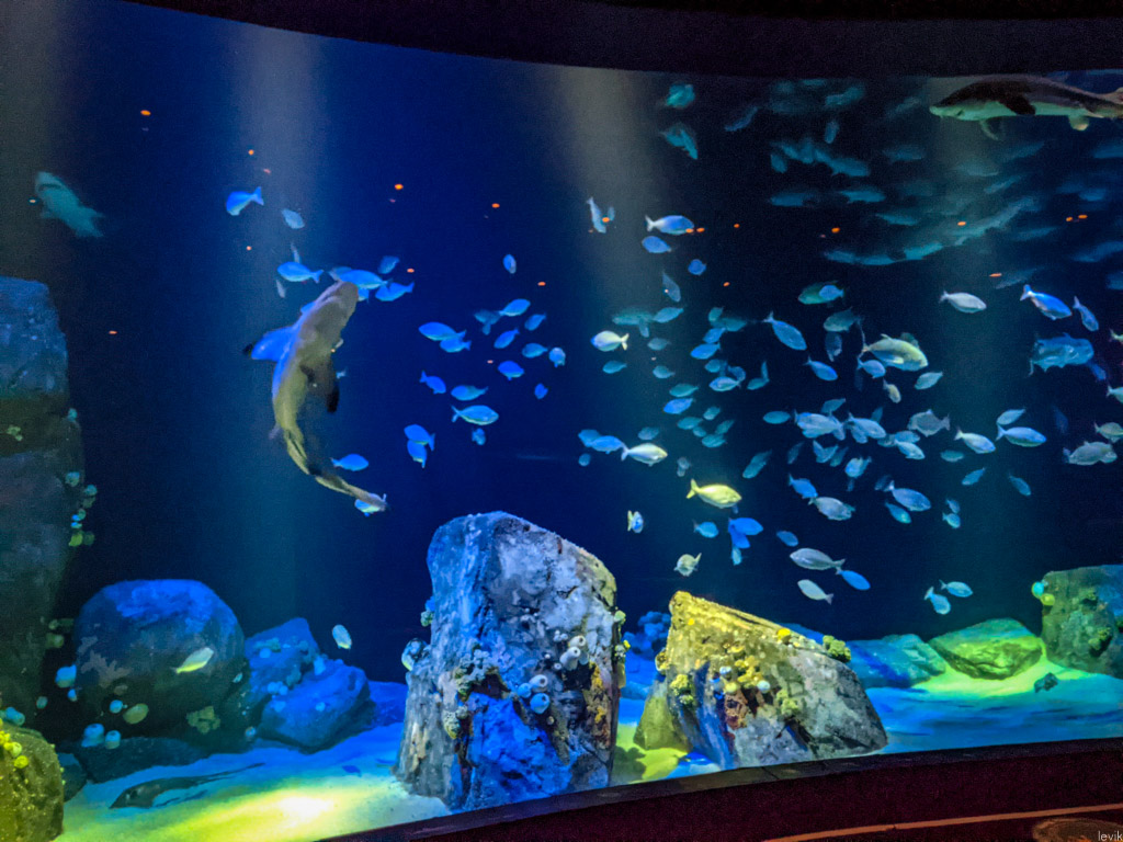 Соревноваться с гигантами индустрии, вроде какого-нибудь Sea World, нашему аквариуму не приходится, но здесь абсолютно точно можно приятно провести пару часов с ребёнком, и посмотреть на красивых разноцветных рыбок за стеклом. Предлагаю и вам мини-экскурсию: