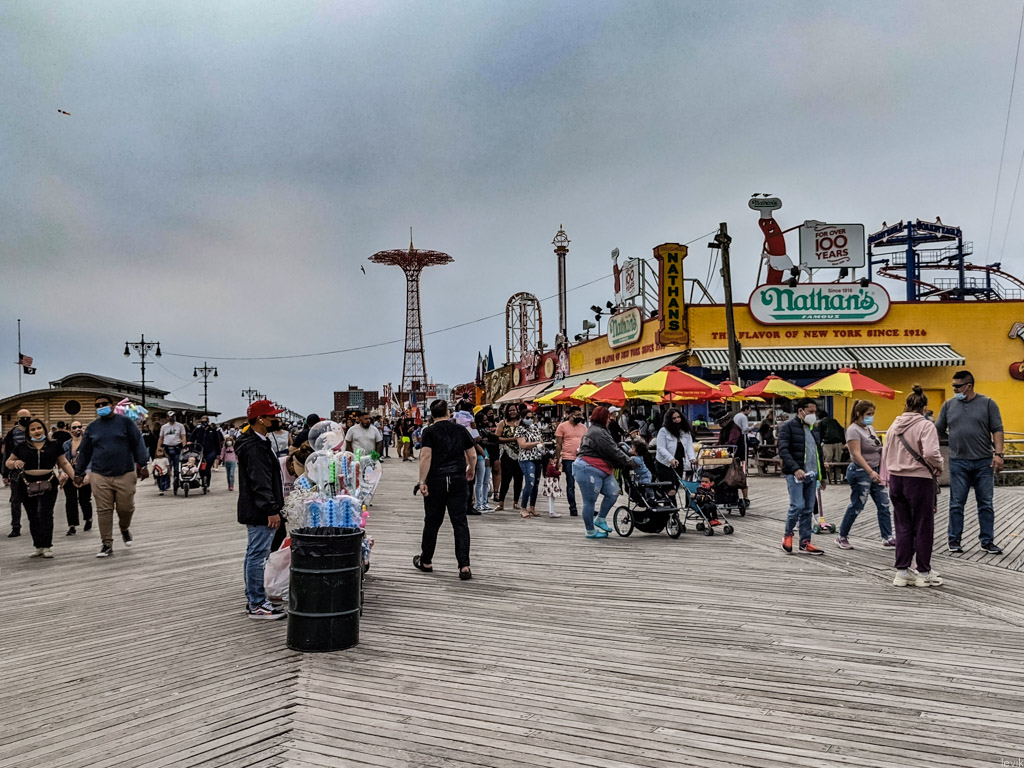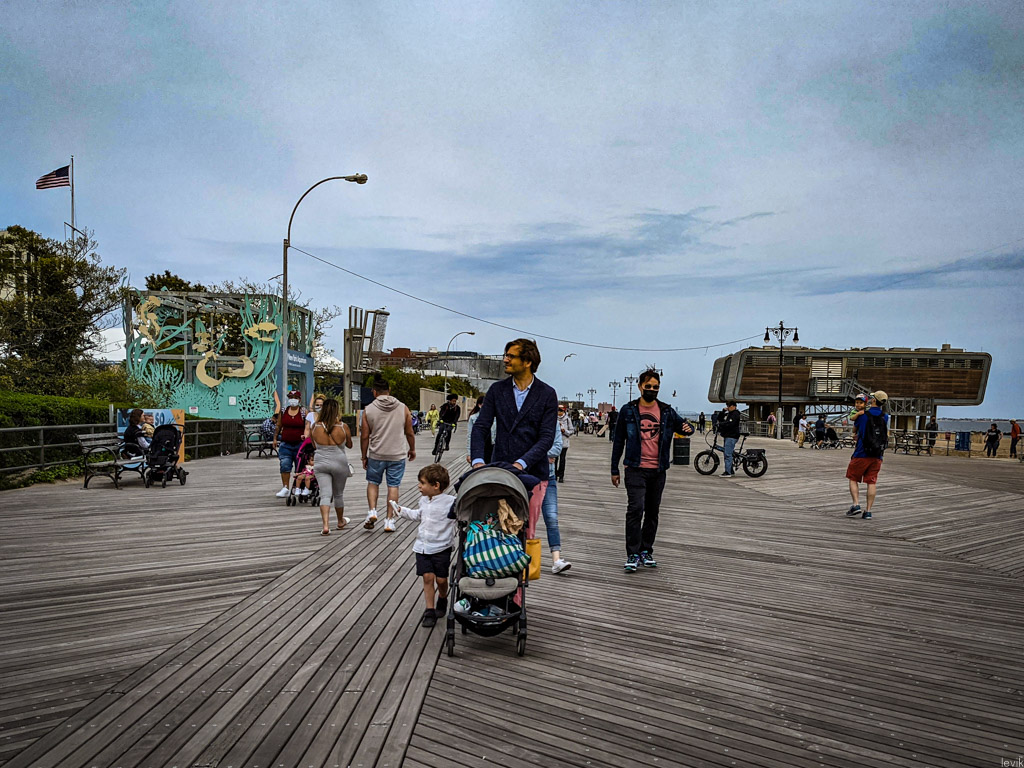 3. На бордвоке сейчас людно - в Нью Йорке сейчас межсезонье между прохладной весной и жарким влажным летом, и народ пользуется возможностью погулять у берега океана.