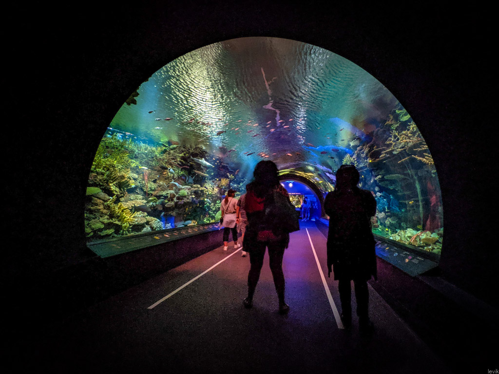 8. Зато внутри павильонов с рыбками и прочими морскими тварями нас ожидало прекрасное представление. В этих зданиях расположены огромные аквариумы, с богатым разнообразием рыб, и хорошей подсветкой. Посетители ходят в полумраке, и смотрят на светящуюся воду, в которой плавают всевозможные обитатели морских глубин.
