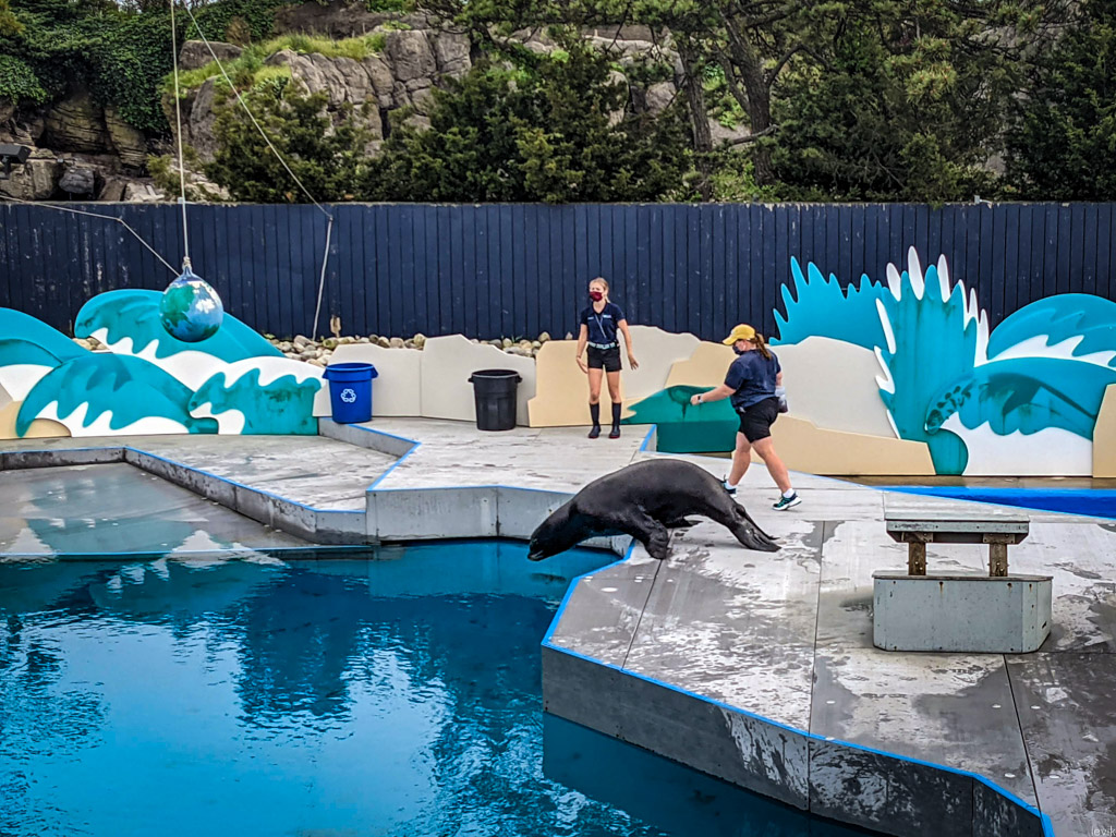 7. Ещё тут есть амфитеатр где проводят представление морских львов. Вернее, одного морского льва, по имени Брузер. Это комичное шоу с детскими шутками, рассчитано оно на аудиторию где-то от шести до десяти, и для Айи это было не очень интересно.