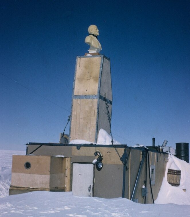 4. Не смотря на то, что у исследователей с собой было достаточно провизии чтоб провести тут полгода, через пару недель стало ясно, что в этих жёстких условиях делать им на полюсе недоступности нечего, и они оттуда уехали. А Ленин остался, в гордом одиночестве.