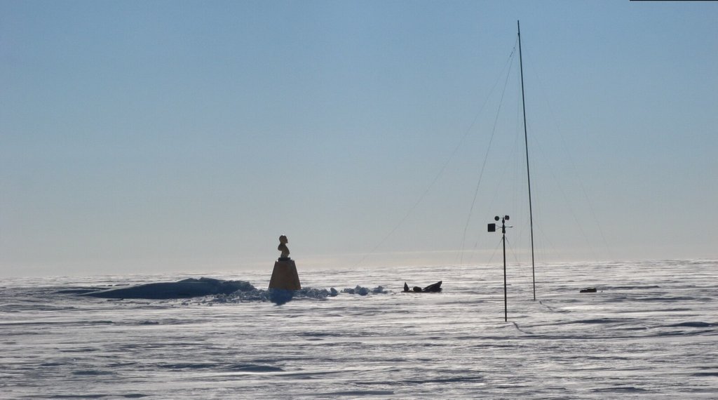 6. В итоге, отставая от своих советских коллег на несколько лет, сюда добрались и американцы. Они провели на полюсе недоступности где-то месяц, и за это время кто-то из них умудрился совершить акт вандализма: хулиганы взяли, и развернули Владимира Ильича так, что он более не смотрел в сторону Москвы и выхода, а обернул свой взгляд к Вашингтону. Ну, или примерно туда. Что поделать, это была эпоха Холодной Войны, тогда много чего себе позволяли.