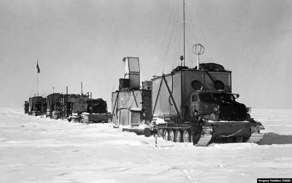 2. И конечно же, это была нога советского человека. (Если вас в предыдущем абзаце напрягло, что я - житель Нью Йорка - назвал спутник достижением всей "цивилизации", можете выдохнуть с облегчением!) Короче, да, третья советская антарктическая экспедиция используя гусеничные снегоходы добралась до этого забытого богом места в декабре 1958 года. Они привезли с собой фургончик, который должен был послужить временной исследовательской базой.