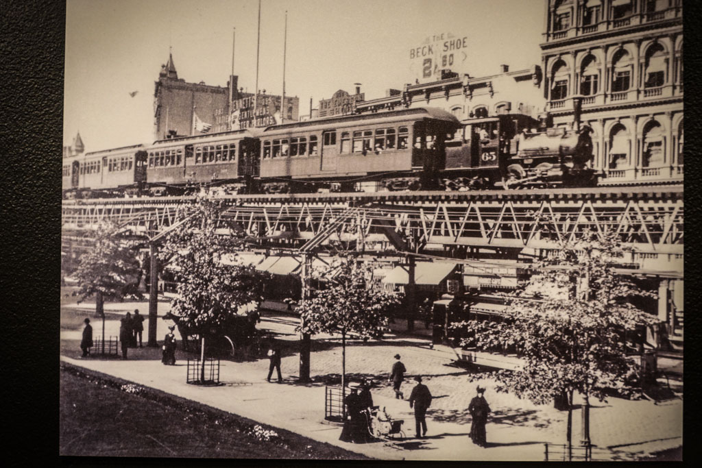12. Здесь хорошо видны первые надземные линии пригородных железных дорог, которые впоследствии превратились в метро. Сначала составы тащили обыкновенные паровозы. Было время, такие существовали по всему Манхэттену. Но городские власти решили спрятать их под землю, для чего пришлось отказаться от паровозов, и перейти к электропоездам.