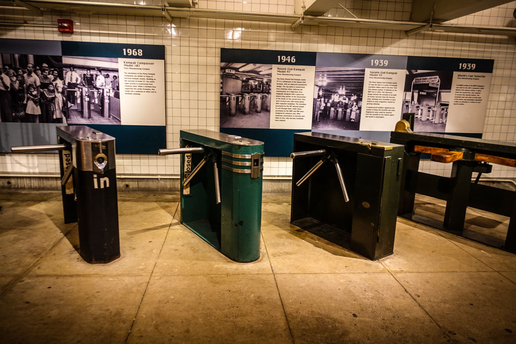 18. Больше всего на выставочном уровне мне понравились турникеты. С самого открытия системы, когда проезд стоил пять центов, их вертушки были деревянными. Они приятно отполированы десятками тысяч рук, все острые углы давно сгладились. Проворачивать такую, зная, что так же делали нью-йоркцы 1930х - одно удовольствие.
