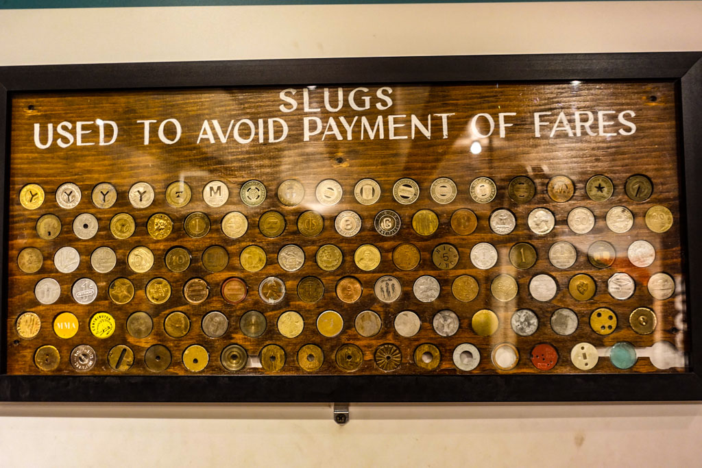 23. В музее висит целая доска фальшивок, которые за годы люди использовали, чтоб перехитрить турникеты метро.