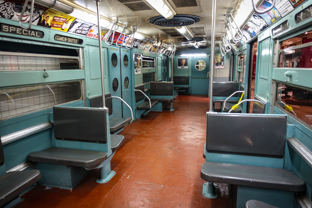 32. Зато сразу бросаются в глаза составы, которые стоят здесь на путях! Это поезда из различных винтажных вагонов, используемых в нью-йоркском метро на протяжении последнего века!
