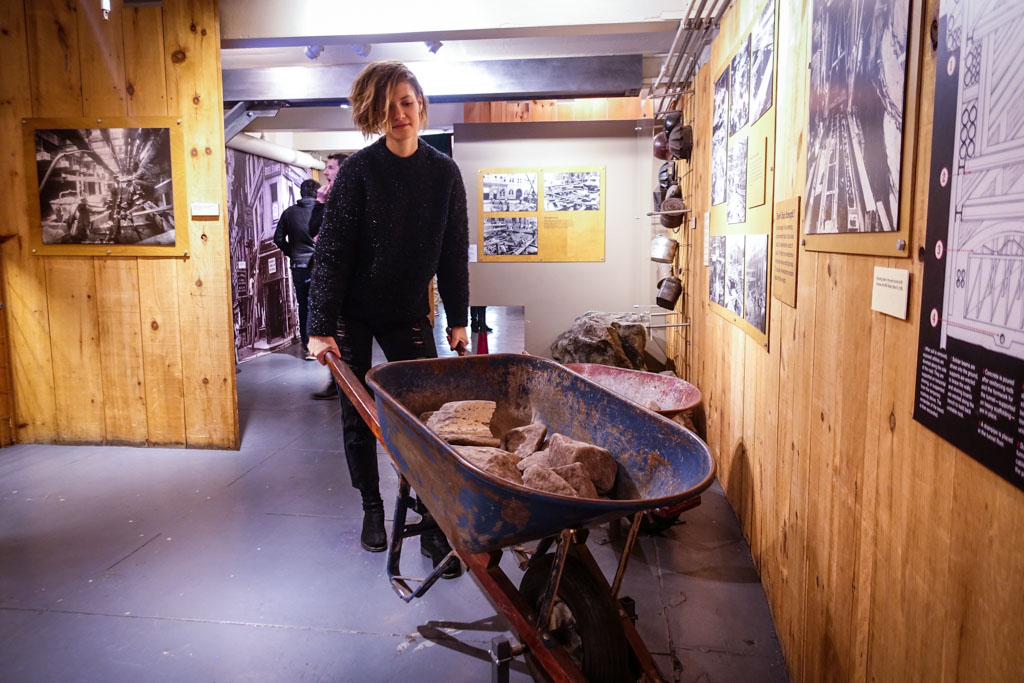 7. Большая часть работы выполнялась вручную. Когда рылись туннели, всю породу вывозили на такихтележках тачках. В музее можно попробовать, сколько весит даже небольшое количество камней (разумеется во время строительства, тележки наполнялись "с горкой").