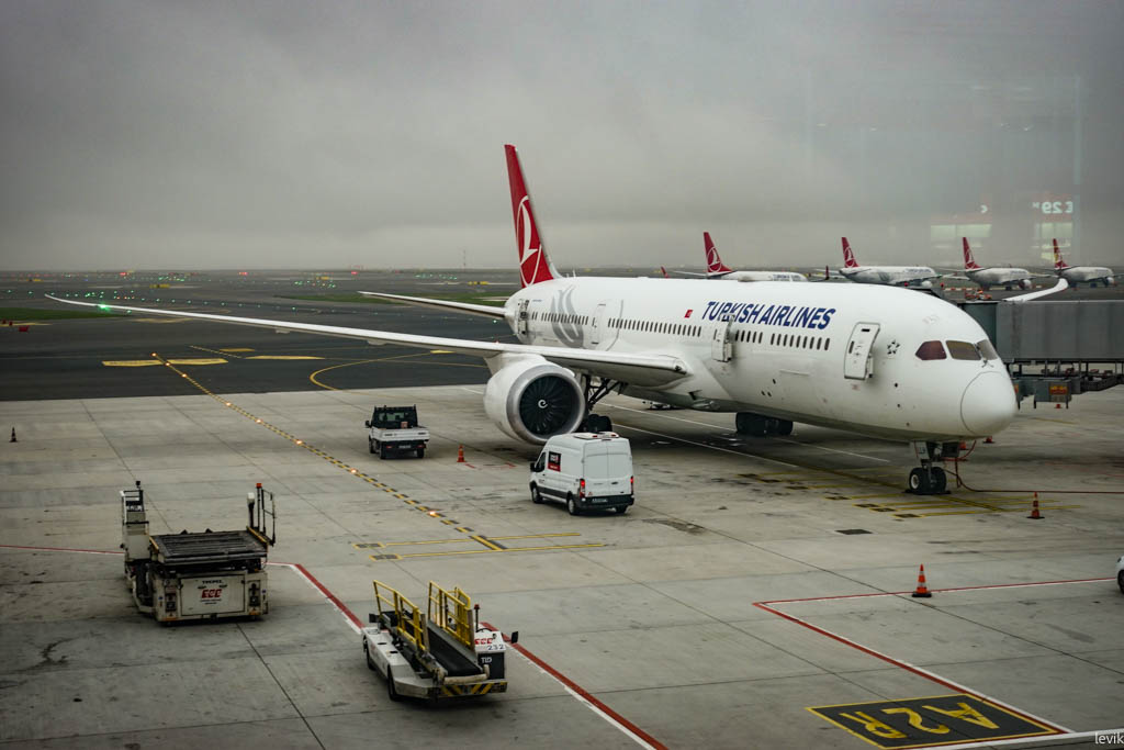 4. Перенесёмся в небо. Во вторник утром, очень успешно погуляв по ночному Стамбулу, мы с Тоней возвращались домой рейсом Турецких Авиалиний. И если туда мы теснились в экономе, то на обратный путь взяли билеты в бизнес-классе.