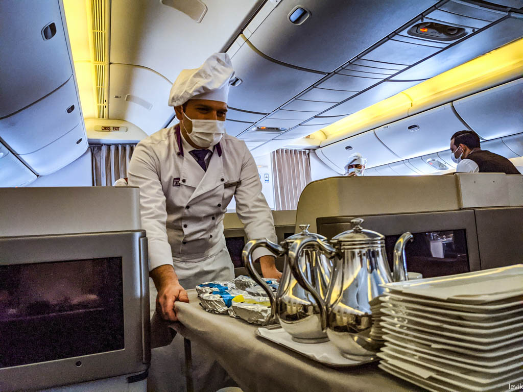 Где-то полгода назад я летал Турками в Северную Македонию, и подробно описал тогда что стало с их бизнес-классом в эпоху коронавируса. Главное, что пострадало была еда на борту. Авиалиния, которая славится своими "авиа-поварами" отказалась от горячей пищи вообще, и подавала только холодные закуски и роллы с курицей, завёрнутые в безликий пластик.