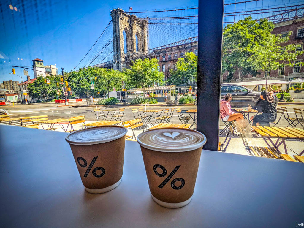 Короче, у меня дома лежало две полностью проштампованных карточки, на два бесплатных кофе. И вот, в четверг до начала рабочего дня, я вытащил Тоню в Дамбо, где у подножия Бруклинского Моста и открылась первая в Америке Арабика.