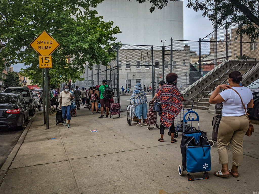 Я сначала даже немного расстроился - подумал, что придётся тут где-то час прохлаждаться. Не видел такой длинной очереди с тех пор как я на прививку от коронавируса ходил. Но потом заметил, что все они стоят с тележками! Оказывается, эта очередь была на на избирательный участок, а к пункту раздачи бесплатной еды для нуждающихся. В районах победней такого много.