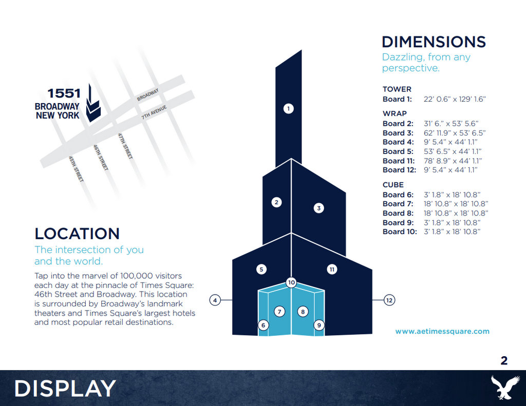 Кстати, похоже, что на видео в твиттере Гаспаряна изображён комплекс American Eagle, у них несколько экранов на трёх уровнях. Похоже, они продают рекламу на всех них комплексно, и по отдельности. Российская реклама, если это не фейк, вышла на двух смежных панелях (2 и 3):