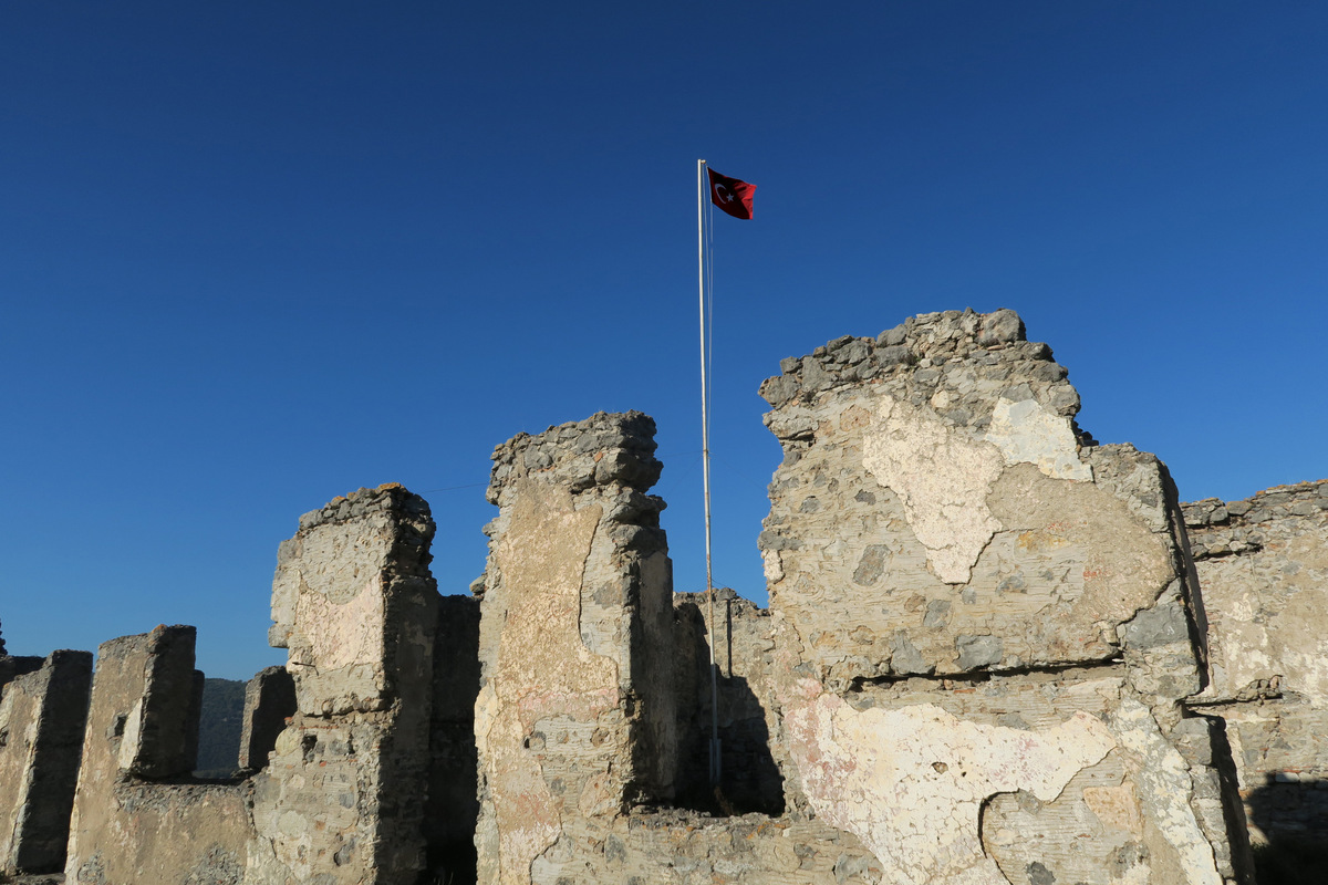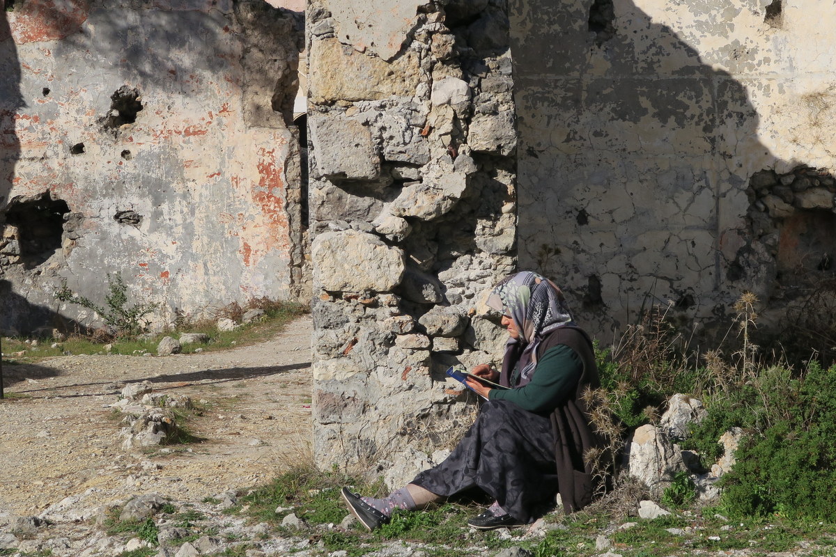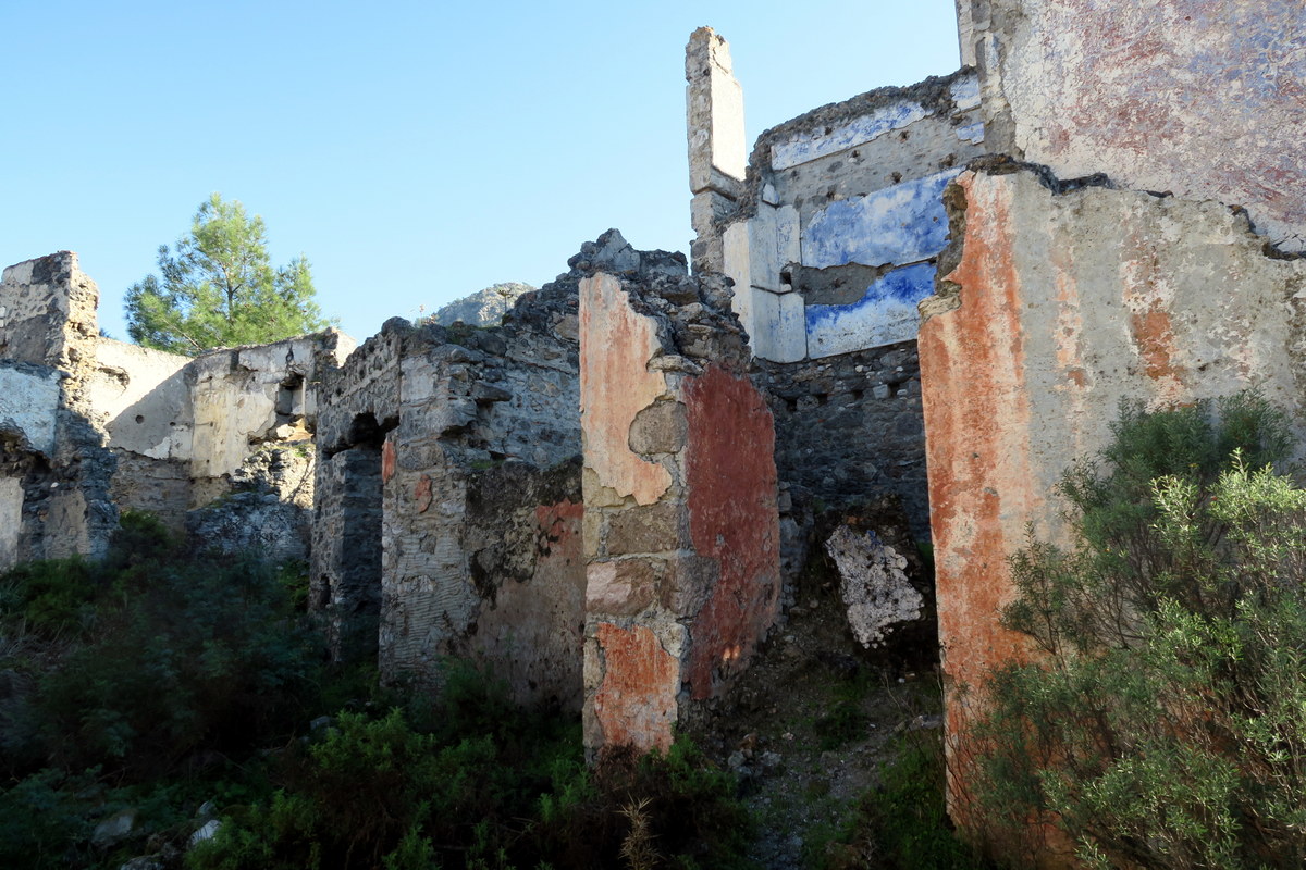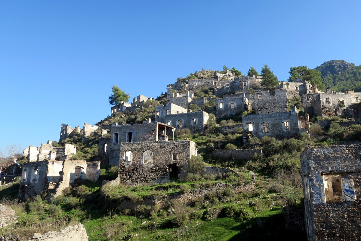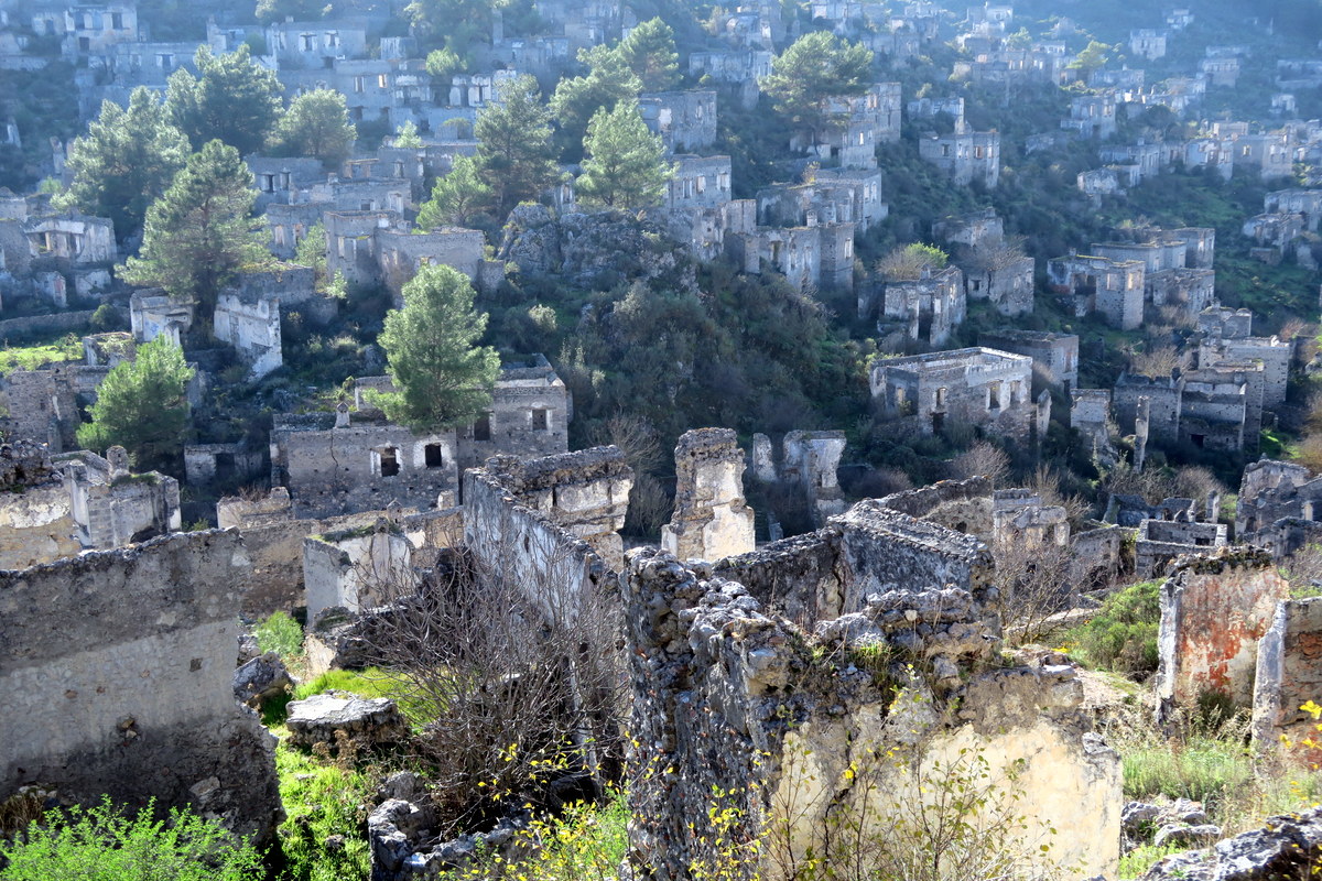 Турция страна большая, и никто не пожелал заселиться в освободившейся холмистой местности. Сотни домов так и остались тут постепенно разваливаться. Почти ни у одного на сегодня нету крыши, но зато стены до сих пор стоят, и можно разобрать, где были раньше улицы.