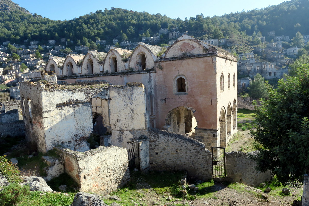 Как оказалось, в Турции полно мёртвых городов, и они бывают очень разного возраста. Вот есть например древняя Мира, в которой трудился Санта Клаус, ей более двух тысячилетий. Но для любителей чего-нибудь поновее, могу предложить Каякёй (Kayaköy):