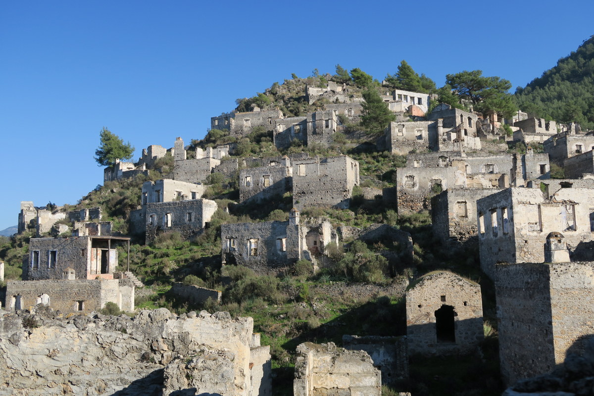 В 1923 году новая Турецкая республика заключила договор с Грецией о вынужденном переселении всех греков из Турции, а всех турок из Греции, чтоб остановить кровопролитие. В результате около полумиллиона человек было переселено. Каякёй, раньше назывался Ливисси. Это был средних размеров городок, в котором жили несколько тысяч греков. Теперь здесь Турция, но нет людей.