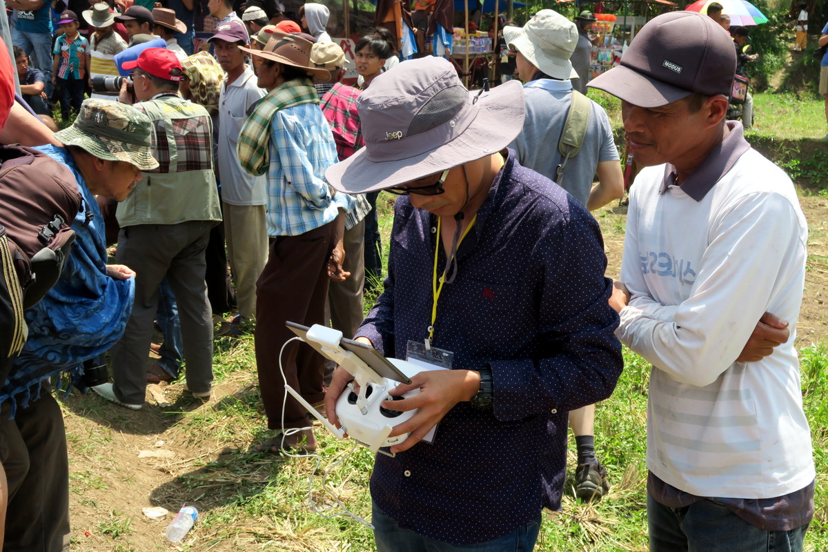 Его летательный аппарат с громким шебуршанием парит над полем. Хозяин его контролирует джойстиками, и смотрит на картинку через айпад. Пару раз он подлетал довольно близко к упавшим в воду жокеям. Одному это явно не понравилось, и он плеснул на дрон грязной водой. Хозяин отреагировал молниеносно - машина тут же отлетела, и больше не нарушала личное пространсто участников фестиваля.