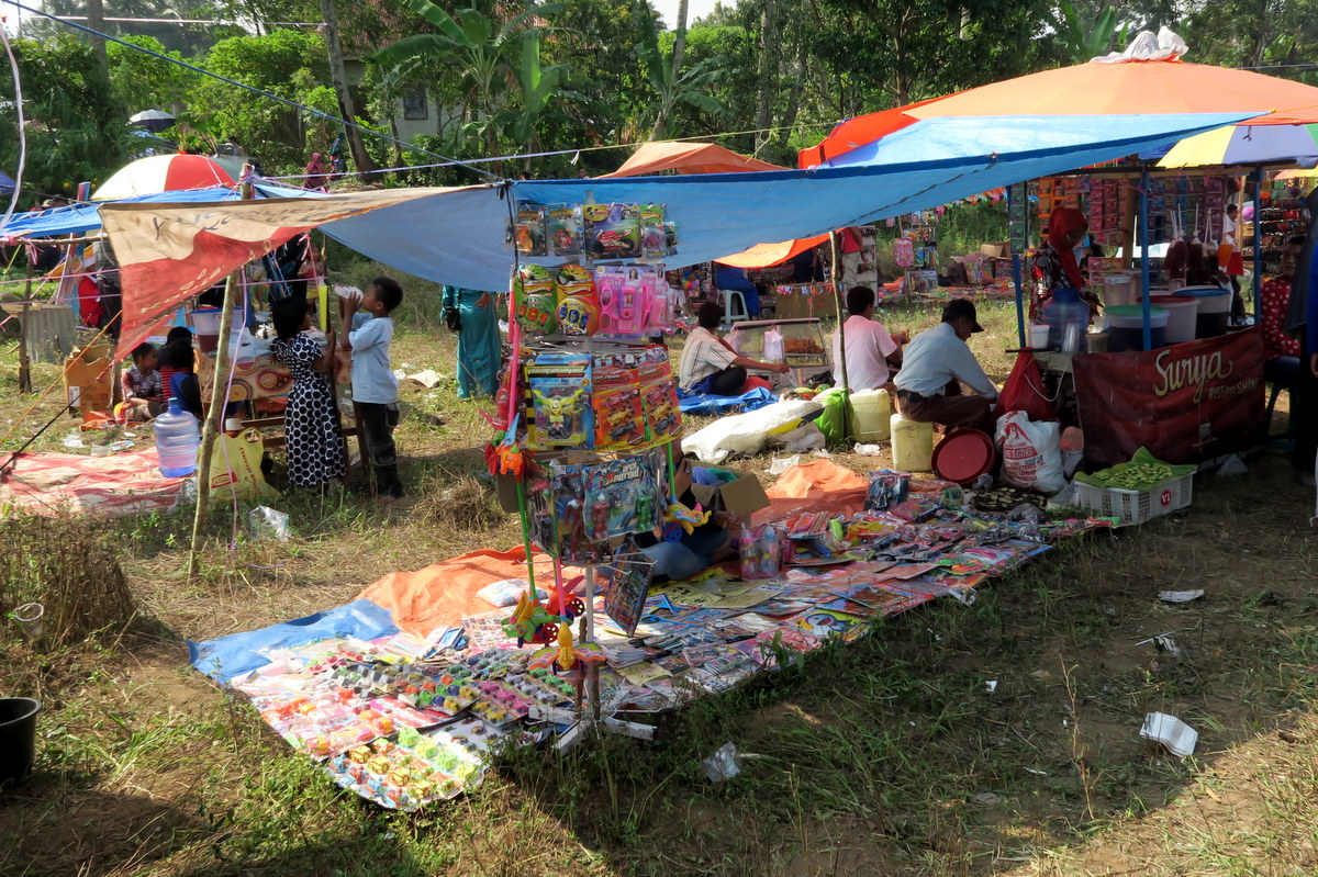 Тут же, в сторонке от гонок, для них работает розничная торговля всякой дешёвой китайской фигнёй. Разнообразные наклейки и пластмассовые безделушки отдают за копейки. Пачу Джави - демократичный фестиваль.