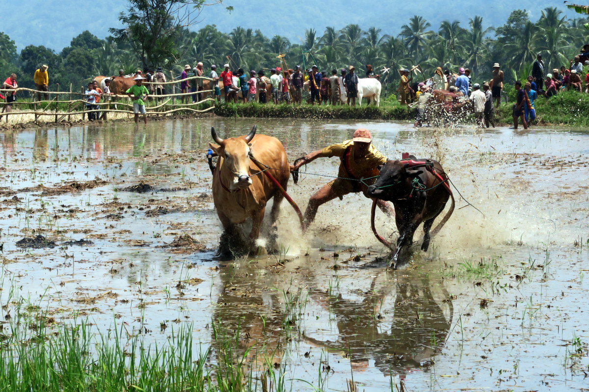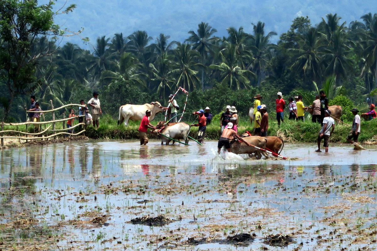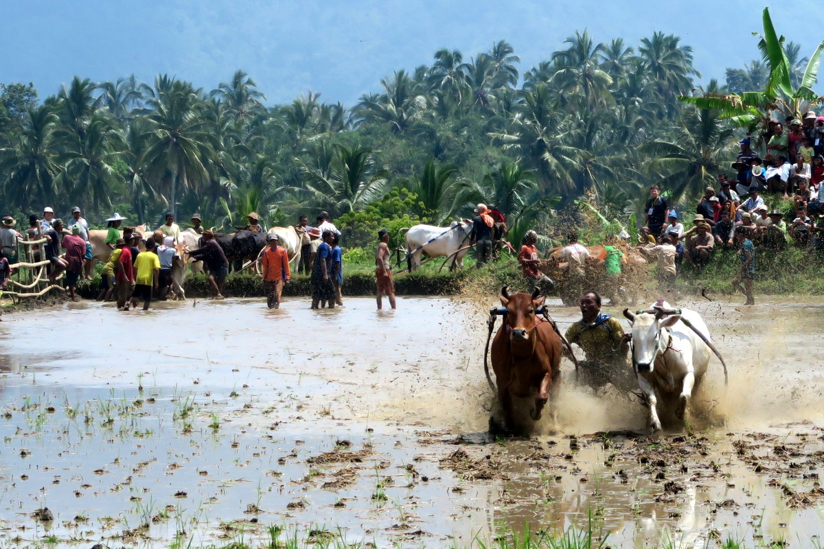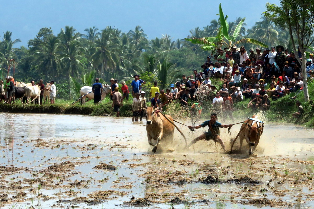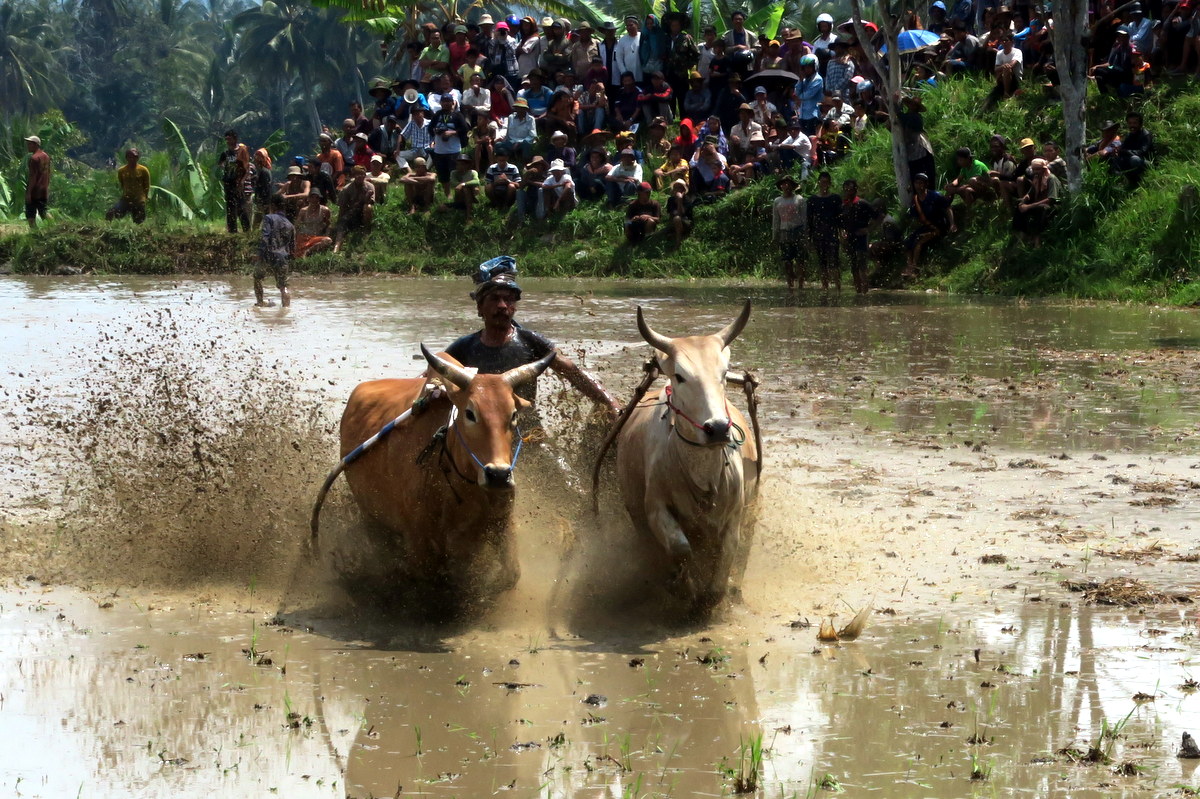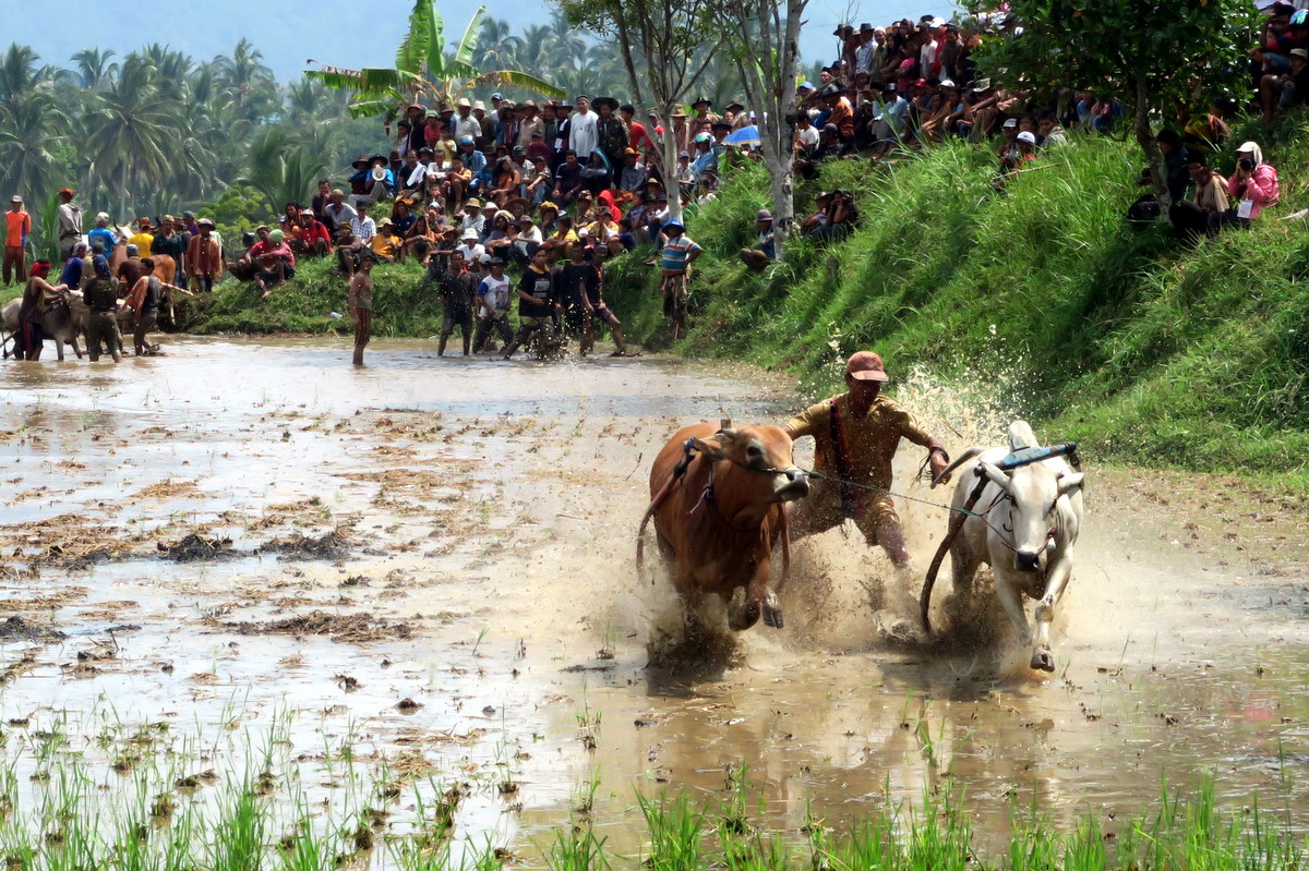 Бег быков Пачу Джави (Pacu Jawi) - традиция народа Минангкабау западной Суматры, исторически приуроченная к окончанию сбора урожая. Изначальная цель фестиваля - дать возможность крестьянам похвастаться способностями своих быков - бывало, их прямо после забегов продавали, и цена зависела от качества выступления. А в чём собственно заключается это выступление?..