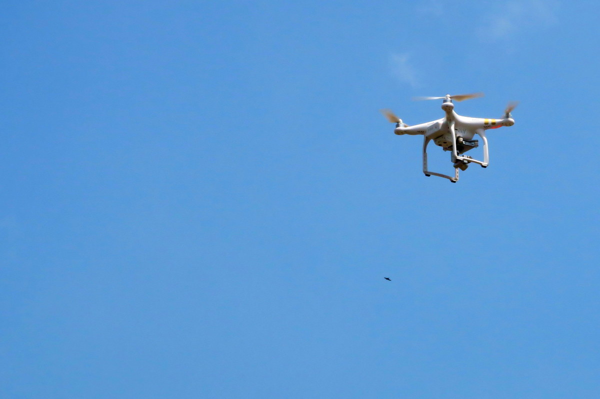 А вот - самый умный из фотографов. Он в пекло не лезет, спокойно себе управляет дроном, который снимает всё действие сверху.