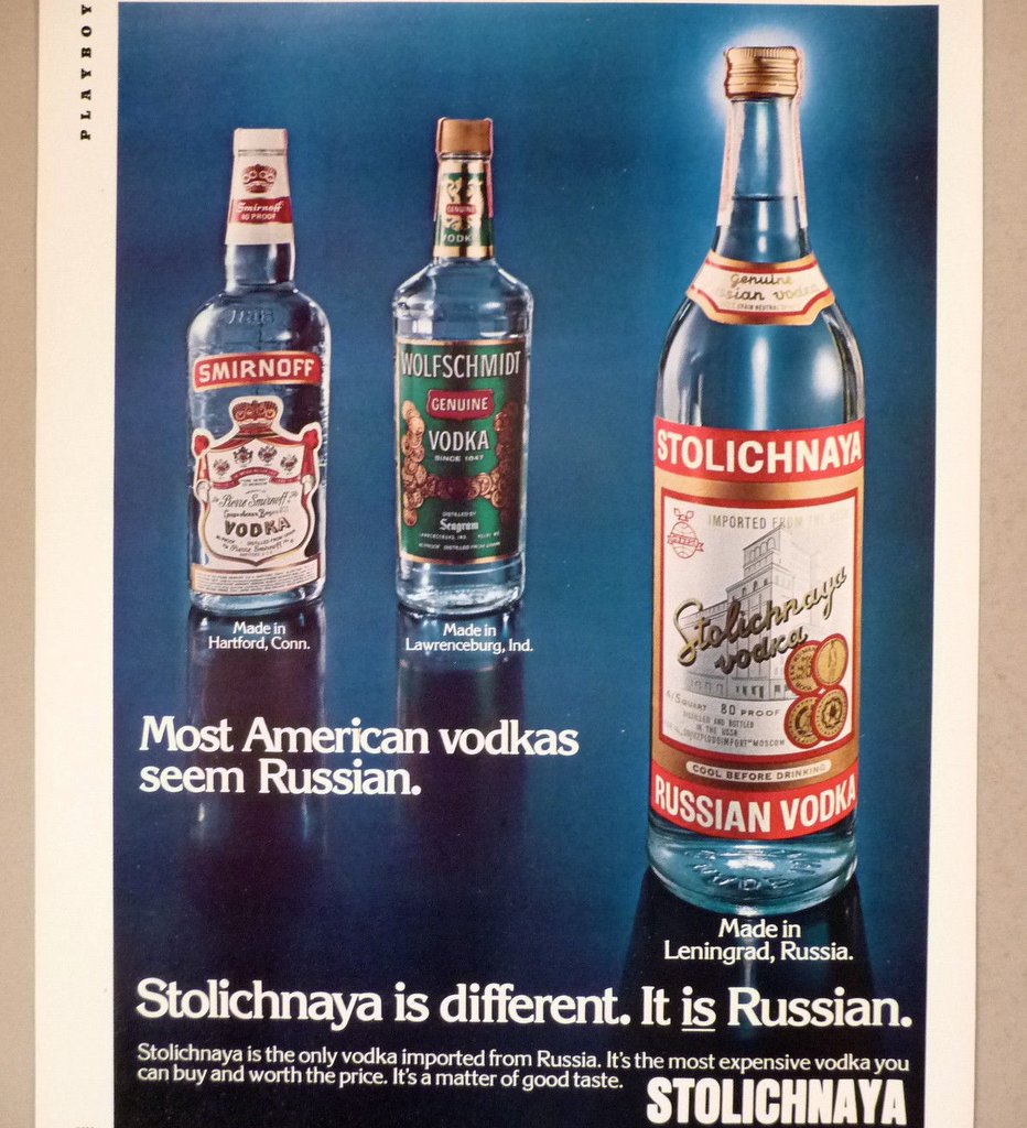Советское руководство не хотело платить за газировку драгоценной валютой, а рубли были бесполезны на мировом рынке. Поэтому взамен за Пепси-Колу американская компания получила водку! Ей было дано эксклюзивное право продавать Столичную в США. В те годы это была единственная русская водка, которую можно было купить на западе - этот факт подчёркивался в печатной рекламе: