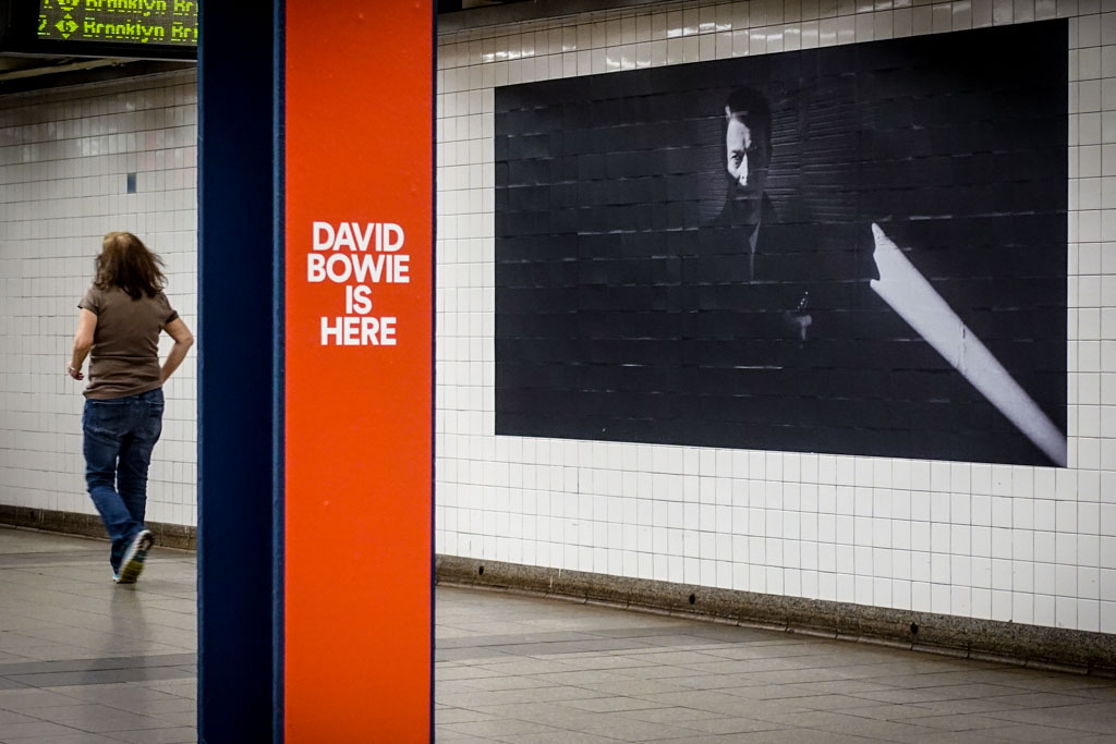 Тут к нам в Нью Йорк, на свою остановку метро вернулся Дэвид Боуи! По крайней мере его образ точно обитает нынче на станции Broadway Lafayette, расположенной неподалёку квартиры великого певца, в которой он умер чуть больше двух лет назад.